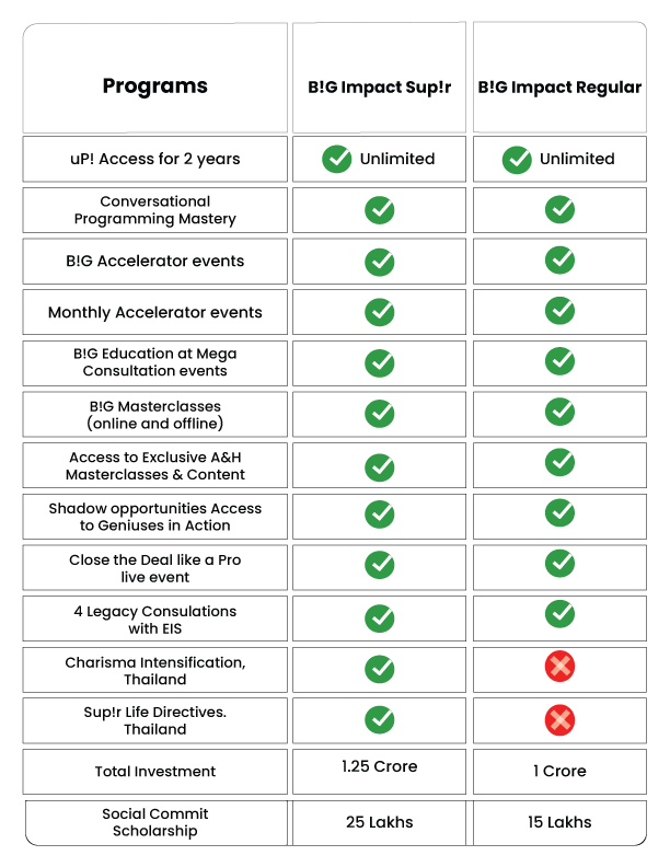 Today, we extend a heartfelt invitation to those who carry the heart of an Impact Creator. We are offering the B!G program with a substantial scholarship, making it accessible to a broader audience. Our goal is to Make Evolving Personal Excellence in a targeted, strategic and time-compressed manner, accessible and available to entire world population. Just like medical science, electricity and automobiles have changed the world.